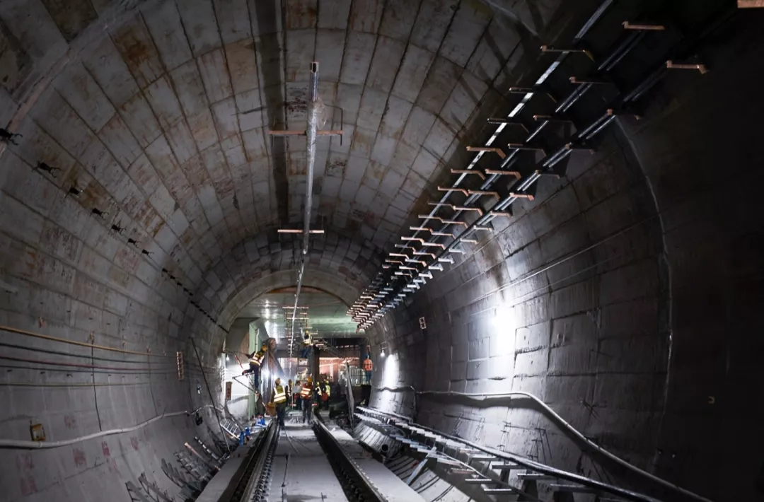 “電通”是該線繼“洞通”、“軌通”里程碑工期目標(biāo)后的又一重大突破,將為全線接觸網(wǎng)熱滑、系統(tǒng)聯(lián)調(diào)和列車上線動車調(diào)試提供必備的電力保障。
