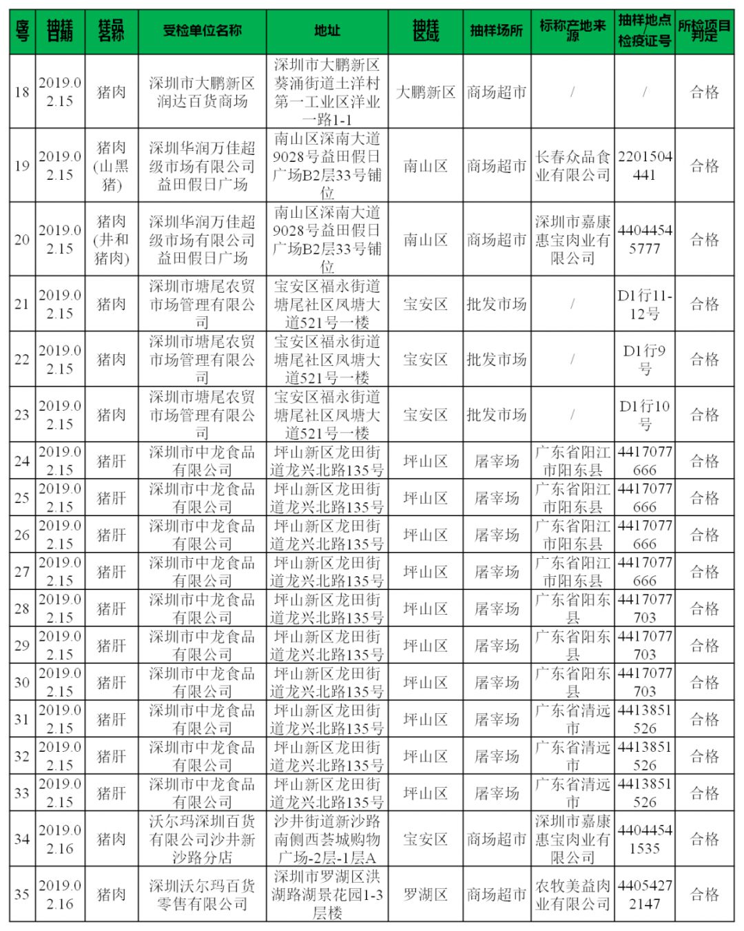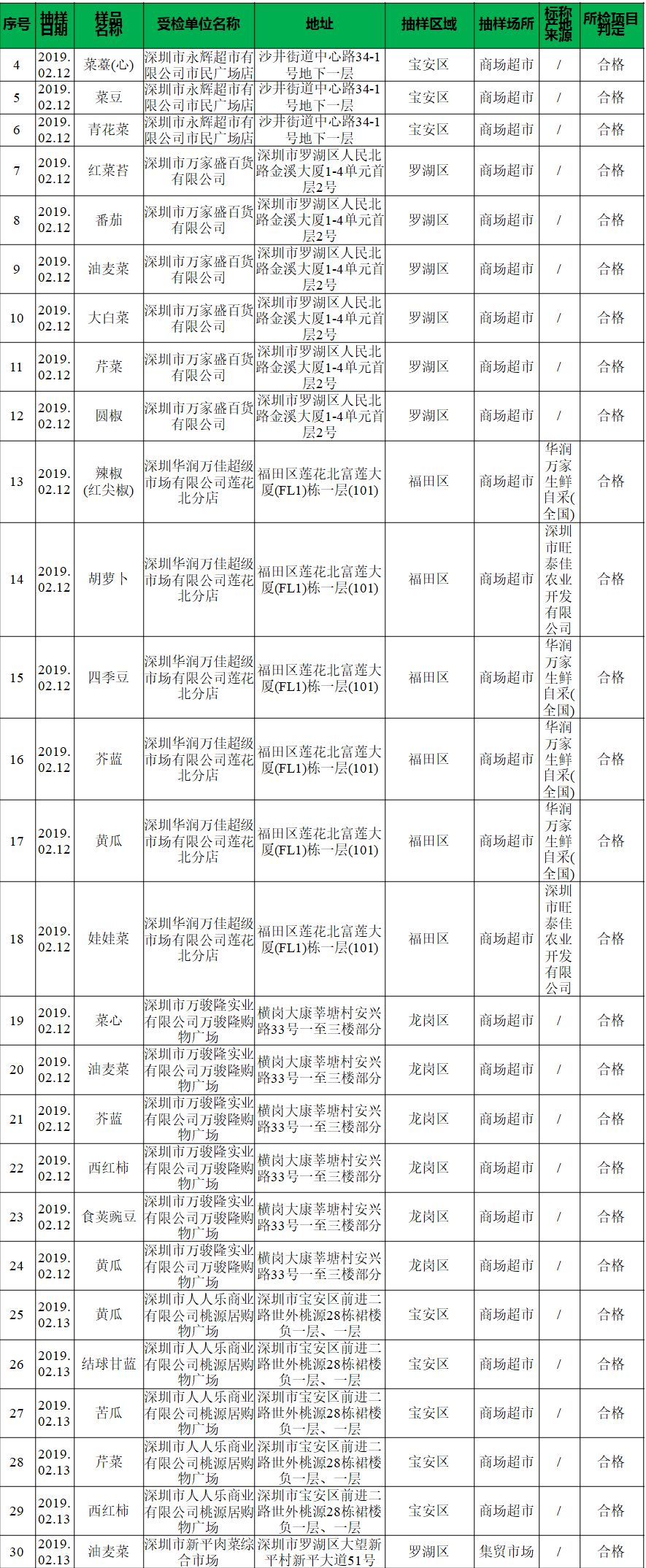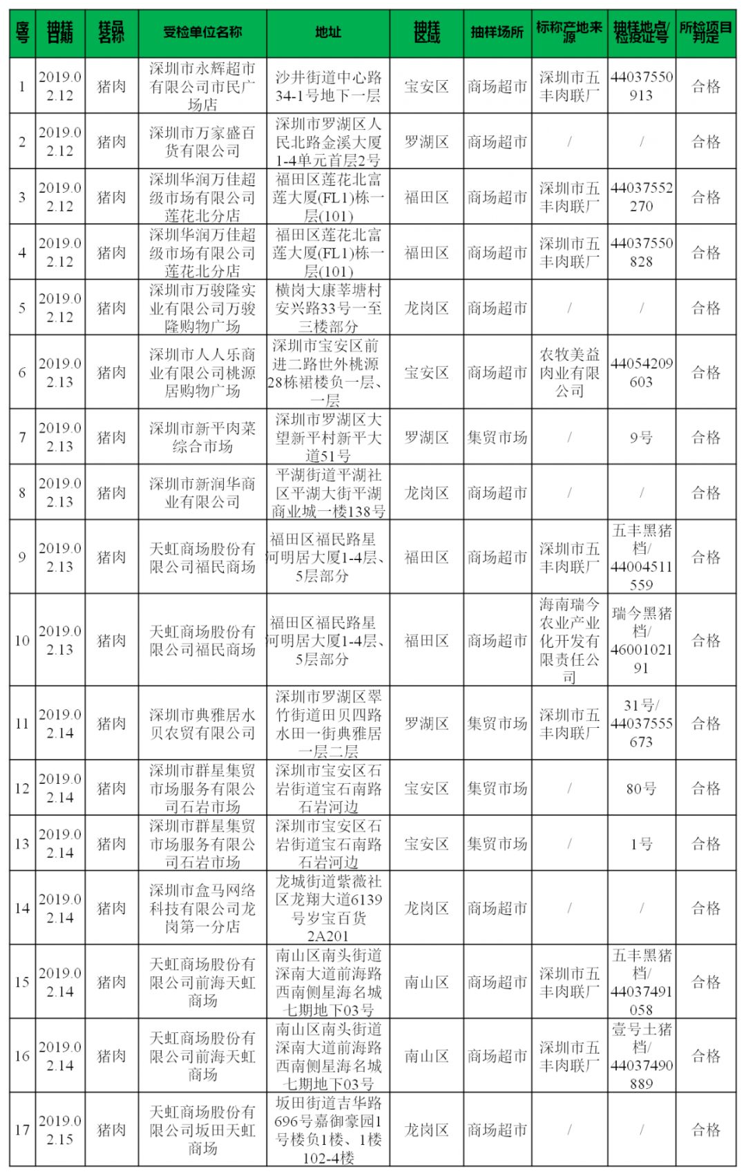豬肉產(chǎn)品和蔬菜抽檢結(jié)果