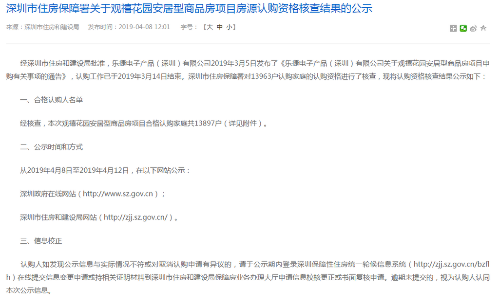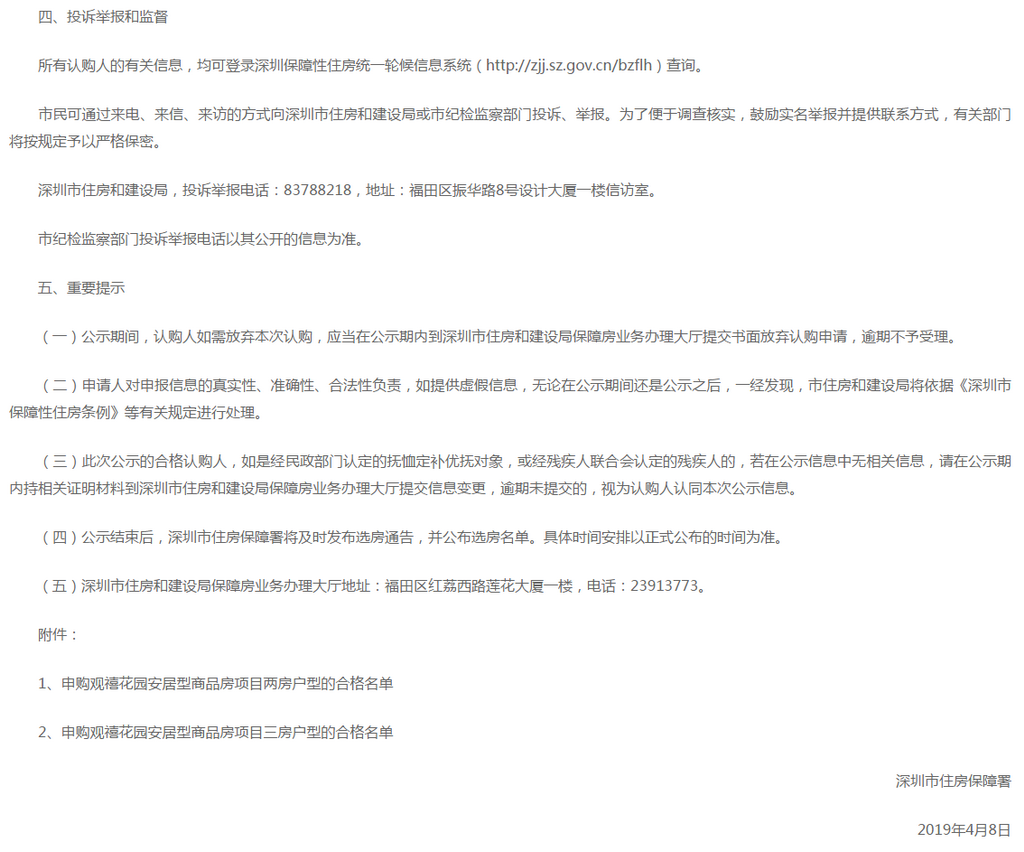 觀禧花園安居房合格認購名單出爐!每平1.5萬可在深安家