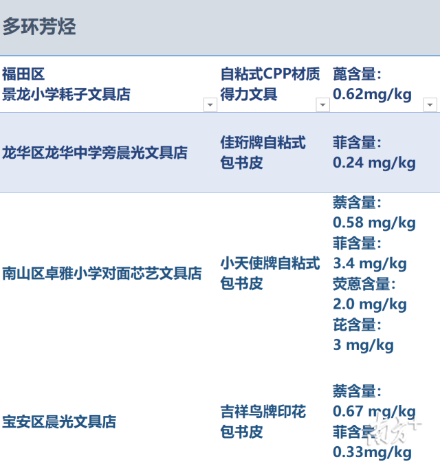 “可以看到,檢測出含有鄰苯二甲酸酯和多環(huán)芳烴的樣本多為自粘式包書皮?!痹撛夯ぎa(chǎn)品檢測所高級工程師王欣說。