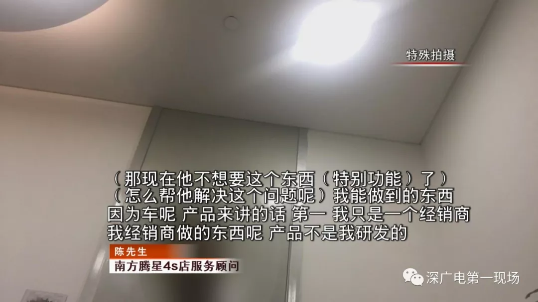 今天下午,記者跟著楊先生再次來(lái)到了南方騰星4s店,售后經(jīng)理陳先生表示,車(chē)輛自動(dòng)開(kāi)啟天窗的換氣功能,是這輛車(chē)的一個(gè)特別功能,對(duì)于給客戶帶來(lái)的不便,這位工作人員卻始終無(wú)法解釋清楚。