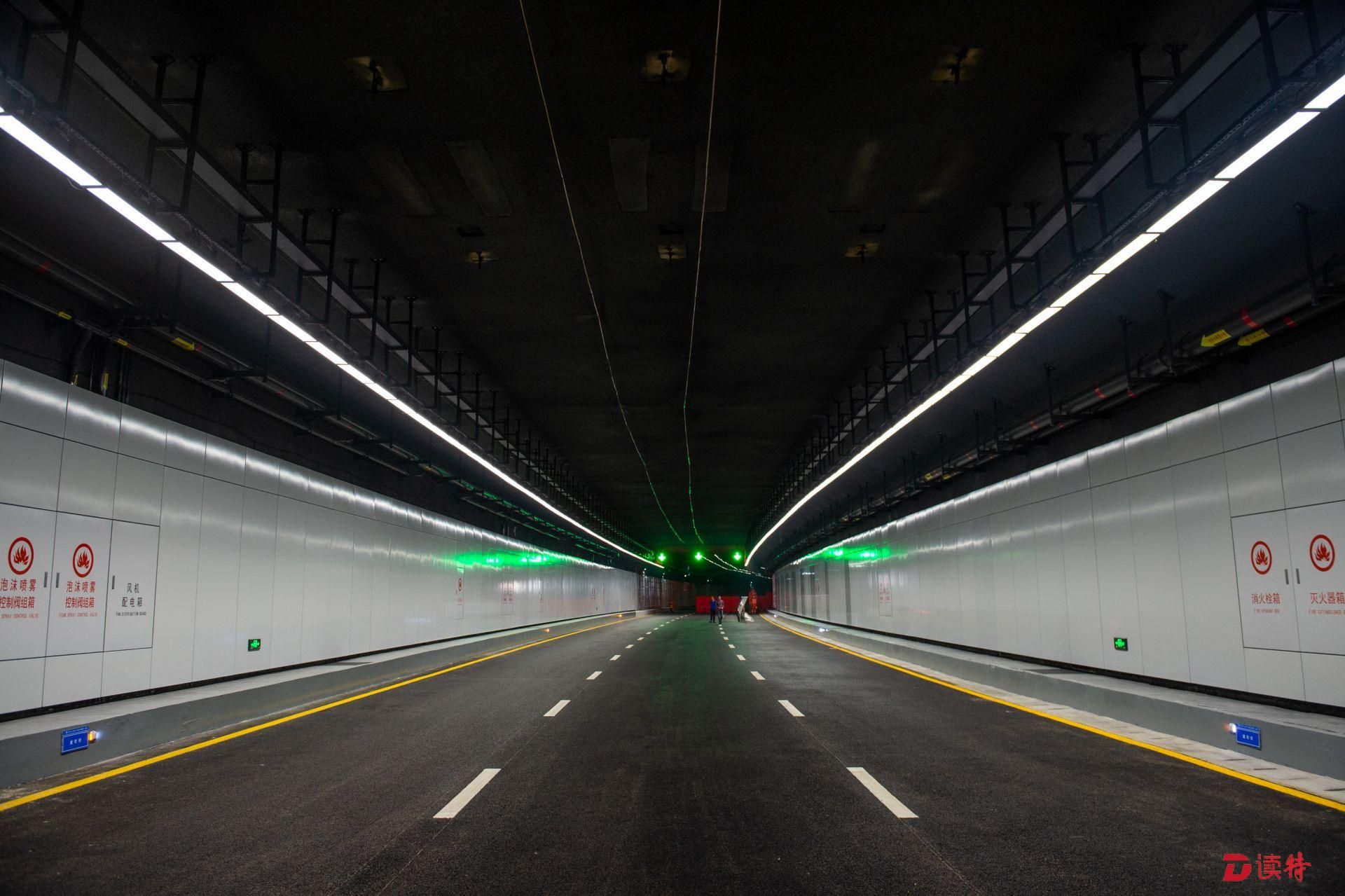 4月16日,讀特記者從臨海大道與前灣三路路口附近乘車進(jìn)入地下道路,看到前海地下道路已經(jīng)實(shí)現(xiàn)主體隧道貫通,項(xiàng)目進(jìn)入裝飾裝修和機(jī)電設(shè)備安裝階段,工人正在隧道內(nèi)安裝照明、通風(fēng)、排水、消防等設(shè)施。在項(xiàng)目工程樣版段,記者看到隧道兩側(cè)的已經(jīng)裝好搪瓷鋼板,頂部的連續(xù)燈帶和交通指示燈也已經(jīng)安裝到位,地面上也已經(jīng)劃好了分道線。中鐵四局機(jī)電公司相關(guān)負(fù)責(zé)人表示,目前前海地下道路機(jī)電裝修工程樣板已經(jīng)順利通過(guò)驗(yàn)收,為接下來(lái)大面積機(jī)電裝修施工提供了標(biāo)準(zhǔn)指引。該負(fù)責(zé)人表示:“全線共安排了一百多名工人,分區(qū)域進(jìn)行設(shè)備安裝和裝飾裝修,將確保項(xiàng)目年底竣工、2020年初通車,為前海發(fā)展提供更好交通保障。”
