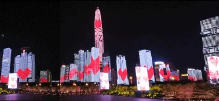此時此刻,愛心在樓宇上升起