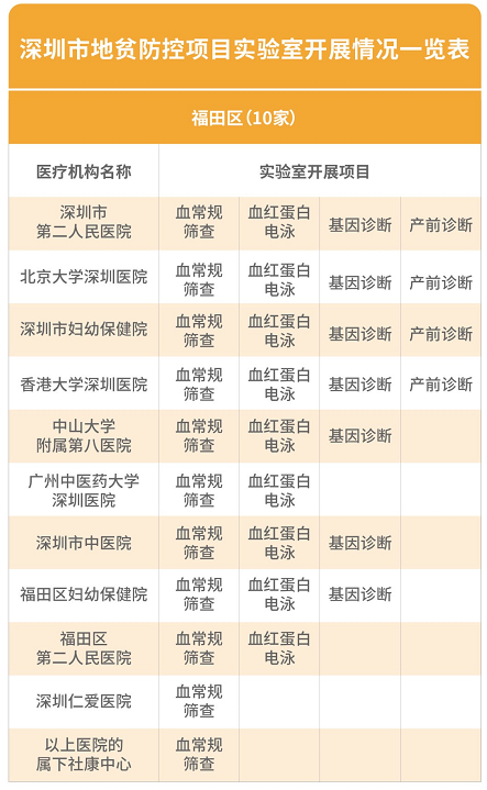 2017年起,深圳市針對(duì)常住孕婦夫婦開(kāi)展免費(fèi)地貧篩查項(xiàng)目,包括:新婚及計(jì)劃懷孕的深圳常住人口夫婦;孕前未接受地貧篩查的、夫婦雙方或一方為深圳常住人口的懷孕夫婦。