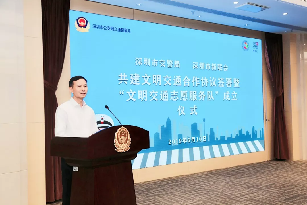創(chuàng)文明交通城,做文明深圳人,新的社會階層人士在行動。5月10日,深圳市交警局與深圳市新的社會階層人士聯(lián)合會(市新聯(lián)會)成立“文明交通志愿服務隊”暨共建文明交通合作協(xié)議簽署儀式在深圳市公安局交通警察局舉行,市委統(tǒng)戰(zhàn)部常務副部長范坤,市交警局局長徐煒、副局長陳顯東,市政協(xié)常委、市新聯(lián)會會長馬少福等參加相關活動。