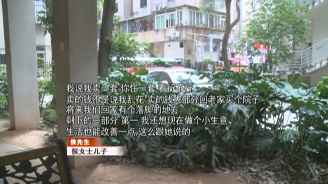 侯女士說(shuō),自己就這么一個(gè)兒子,兒子從4個(gè)月大就是由自己一手帶大,自己走了以后,房子都是他的,何苦這么折騰她。所以自己就不同意兒子賣(mài)房,這也是兒子這一個(gè)多月做出過(guò)激舉動(dòng)的原因。