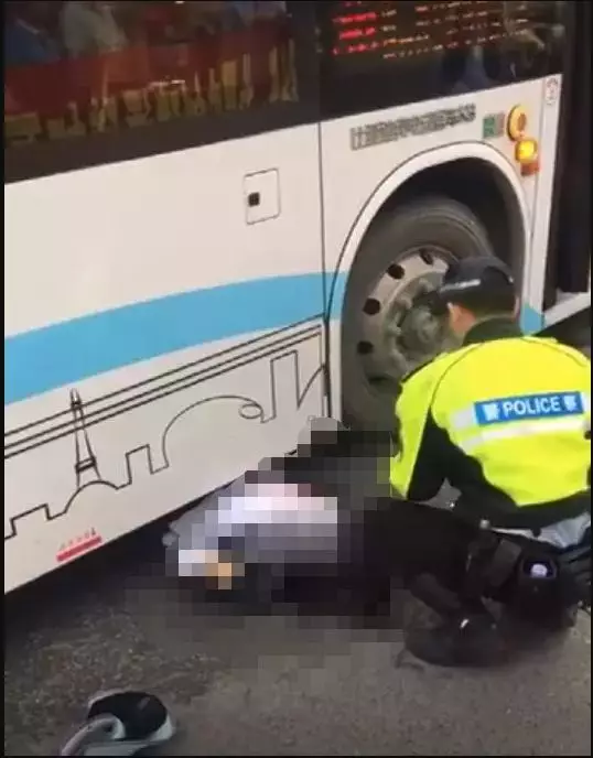 從報料市民拍到的現(xiàn)場畫面可以看到,在一個右轉(zhuǎn)彎路口處,一輛公交車疑似和一名路人發(fā)生了碰撞,一名身穿白色上衣的女子倒地,幾乎整個下半身都被卷入了公交車底,女子臉上和身上都有明顯血跡,身旁一位交警在照看著她。