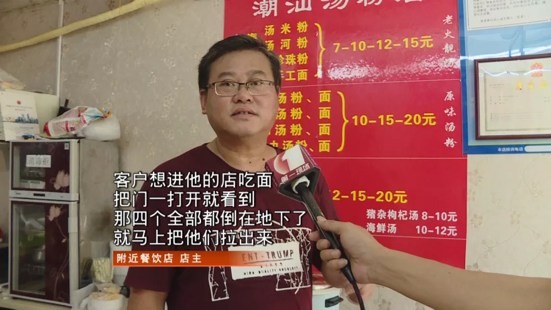 店鋪打開(kāi)門(mén)后,食客發(fā)現(xiàn)店內(nèi)有四名人員倒地,大家立即將他們拉出來(lái),并將店門(mén)敞開(kāi)通風(fēng),撥打了120急救。