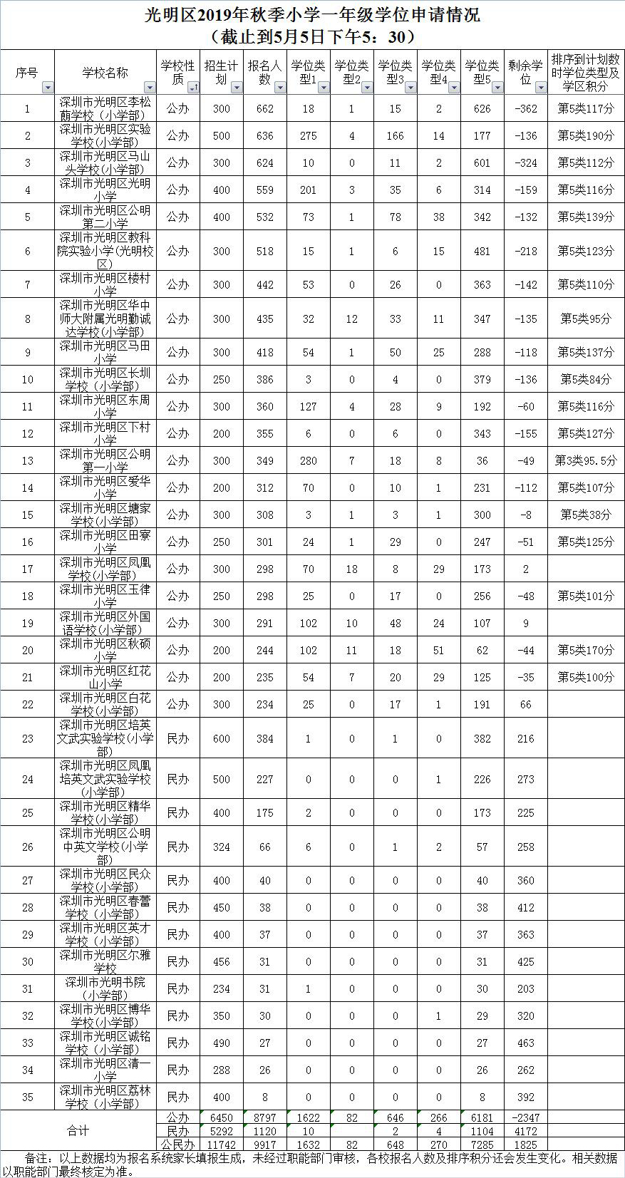 數(shù)據(jù)來源:寶安區(qū)教育局基礎(chǔ)教育科(截至2019年5月12日下午5點(diǎn))