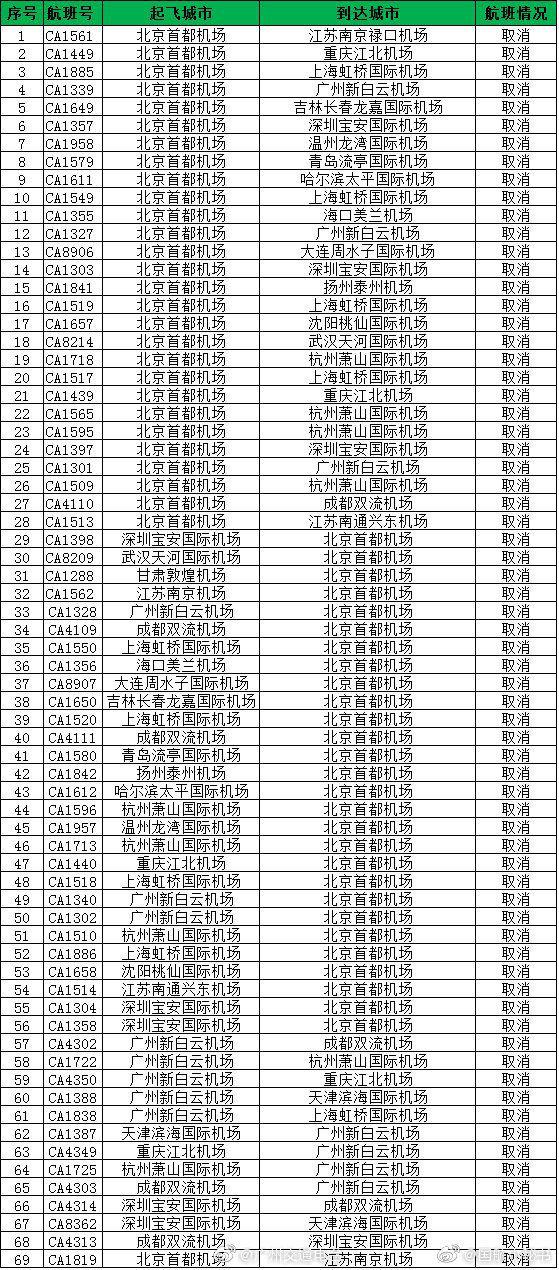 受雷雨天氣影響,國(guó)航取消69個(gè)往返北廣深航班!