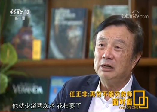 任正非:一樣,我們可以講,在日本一個(gè)小學(xué)教師,娶一個(gè)電影明星做太太,但以前是有名字的,現(xiàn)在我不講這個(gè)名字了,很正常,覺(jué)得很榮耀,不覺(jué)得不榮耀。當(dāng)然我們國(guó)家七十年來(lái)有巨大進(jìn)步,這三十年也有巨大改善,對(duì)吧,教師的生活也有大的進(jìn)步,但是我們要看到他們是我們祖國(guó)的未來(lái),他們是國(guó)家未來(lái)。他們擔(dān)負(fù)著花朵,給花朵澆水的人。我們都不給花朵澆水的人一種事業(yè)心一種使命感的話(huà),他就少澆兩次水,花枯萎了,我們不就是一個(gè)喬布斯少掉了嗎?