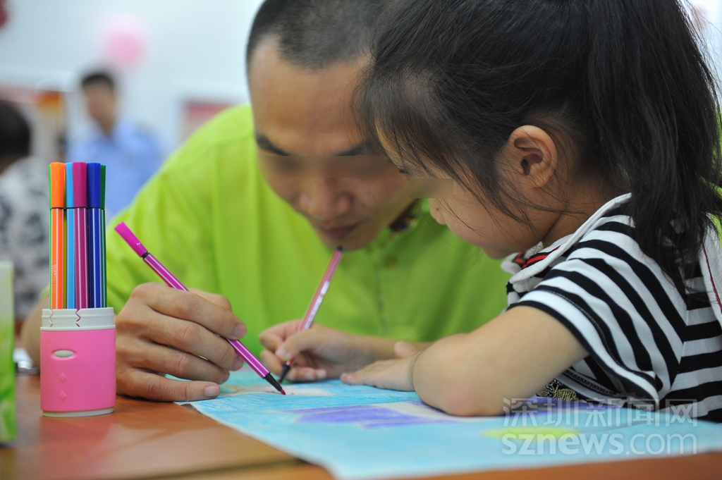 三歲半的圓圓自出生以來(lái)從未見過(guò)爸爸張某,這次在獄內(nèi)相見,一開始對(duì)身邊爸爸滿是錯(cuò)愕,完全把他當(dāng)成了陌生人,在媽媽的鼓勵(lì)下,才慢慢有了親情上的觸碰。張某把圓圓摟在懷里,眼睛從未離開過(guò)女兒,一會(huì)摸摸女兒的胳膊,一會(huì)給女兒拆零食,也陪著她做做涂鴉。可除了這些,他暫時(shí)卻找不到和女兒交流更好的辦法。