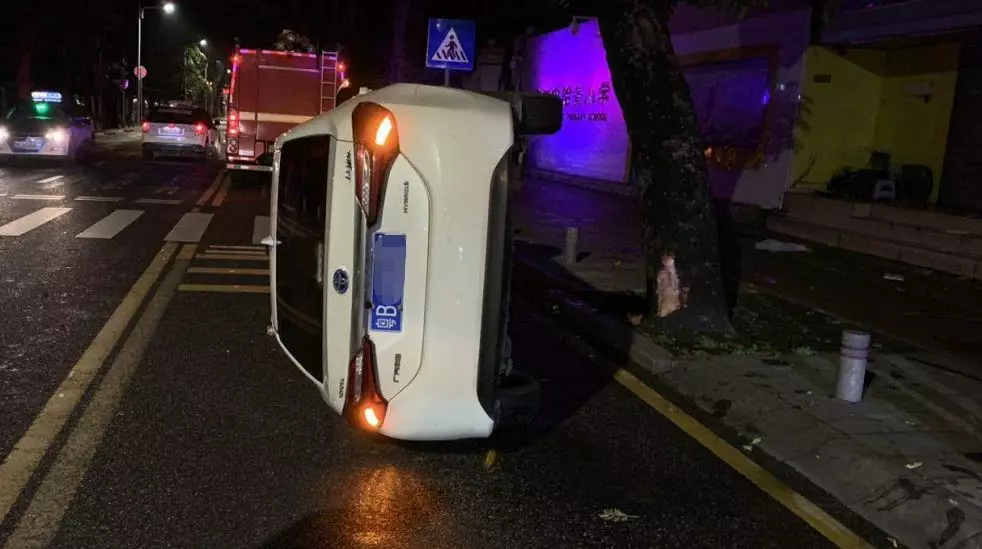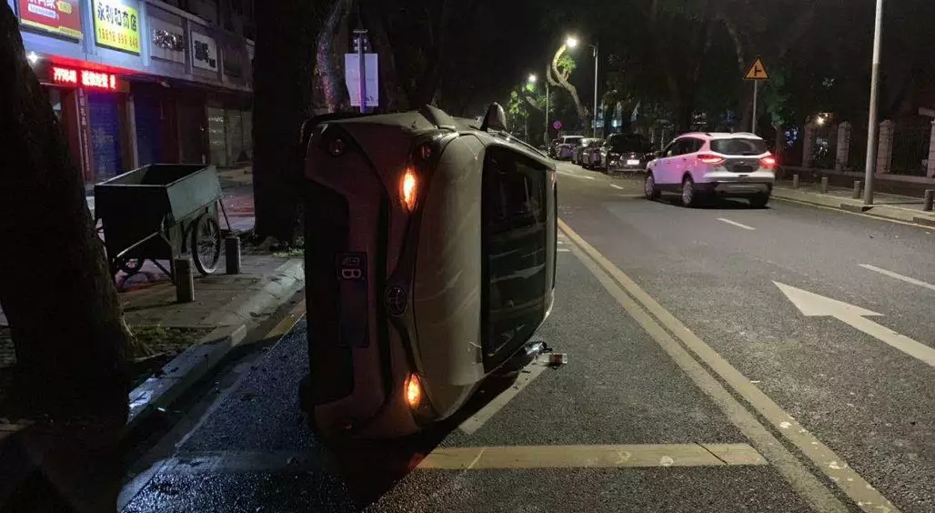 深圳交警接報后,立即趕往事故現(xiàn)場進行處理。民警到達事故現(xiàn)場時,只見涉事車輛側(cè)翻在路肩旁,白色小車左側(cè)駕駛位已經(jīng)凹陷變形,部分車身零部件脫落掉在地上,車輛因故障無法啟動,駕駛員李某未受傷。