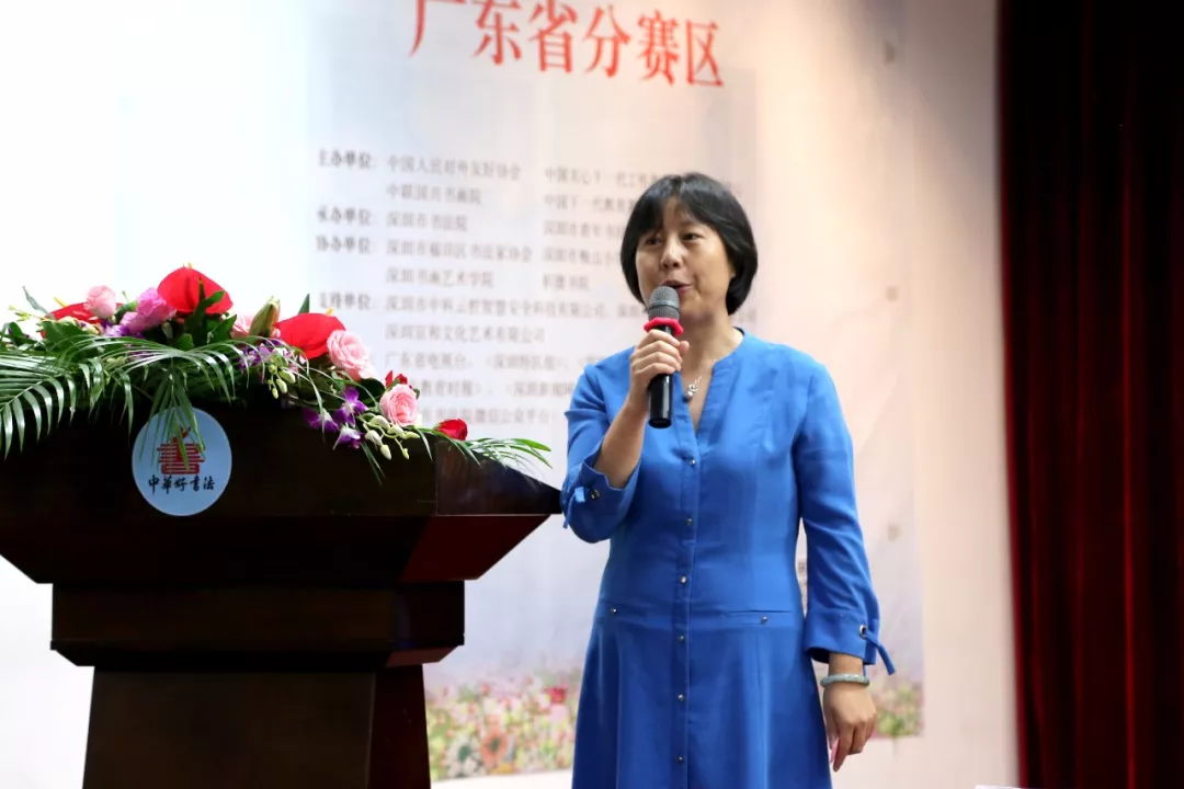 深圳市老干局副局長(zhǎng)、深圳市關(guān)心一下工作委員會(huì)辦公室領(lǐng)導(dǎo)王小蓉女士宣布“中華好書(shū)法”全國(guó)中小學(xué)師生書(shū)法大賽廣東省分賽區(qū)比賽正式啟動(dòng)