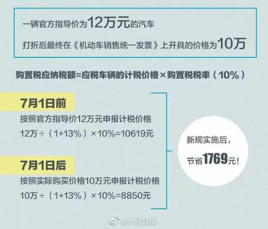 7月1日起,消費(fèi)者購買車輛應(yīng)扣稅款將取決于實(shí)際支付金額