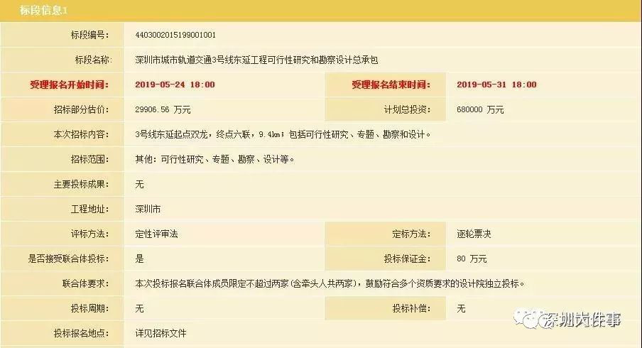 2019年5月24日,深圳市住房和建設(shè)局公布《深圳市城市軌道交通3號線東延工程可行性研究和勘察設(shè)計(jì)總承包》招標(biāo)公告。