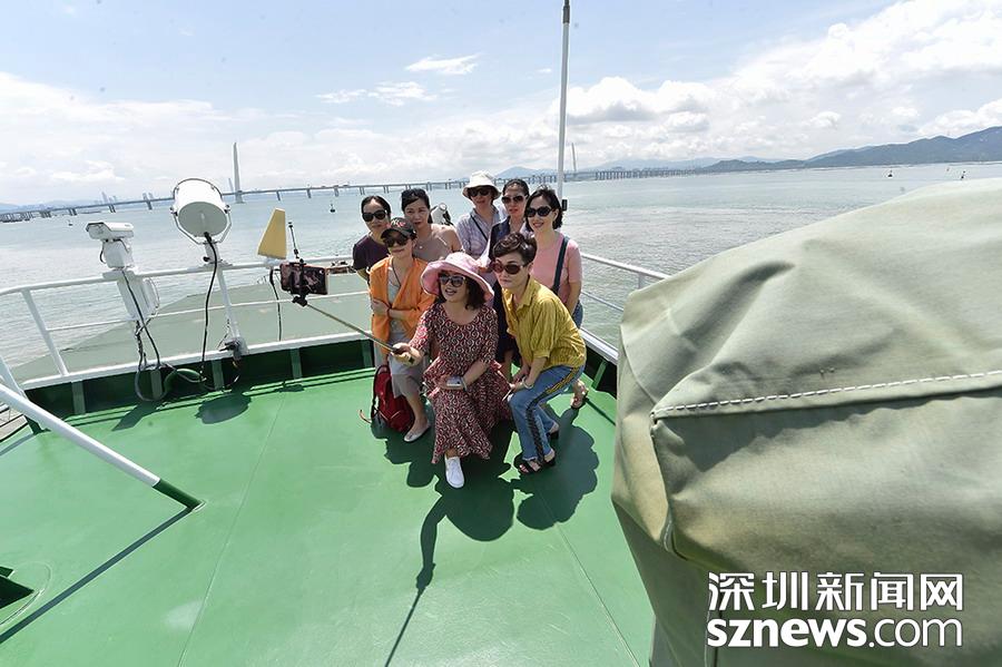 120名市民代表分成兩個航次乘船出游,每航次60人。中國海監(jiān)9012船從深圳濱海休閑帶海監(jiān)廣場碼頭起航,市民海上參觀了深圳灣大橋,經(jīng)國際郵輪母港、SCT碼頭,到大鏟島附近海域,后返回蛇口海監(jiān)基地。