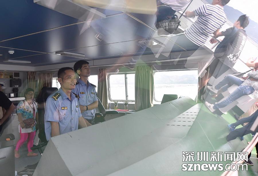 海監(jiān)船上,參觀市民饒有興致地傾聽了海監(jiān)漁政執(zhí)法人員關于我市海洋資源、海島狀況以及海洋執(zhí)法工作的介紹,觀看了深圳灣禁漁區(qū)執(zhí)法管理記錄片,并暢游了我市西部海域海島。