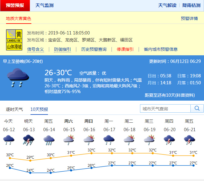 自10日起,我市已經(jīng)進(jìn)入新一輪龍舟水活躍期。西南季風(fēng)攜帶南海和孟加拉灣的大量水汽,在高空槽和低層切變線的共同影響下,給廣東帶來了這次持續(xù)多日的龍舟水降雨過程。12日,我市陰天有中到大雨,局部暴雨,并伴有雷暴和短時(shí)大風(fēng)。早晚清涼,最低氣溫徘徊在25℃左右,白天最高氣溫在28℃左右。