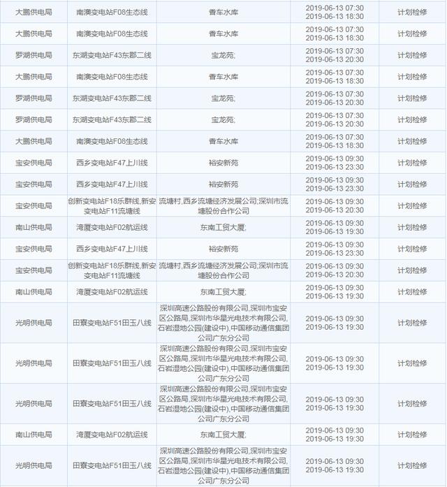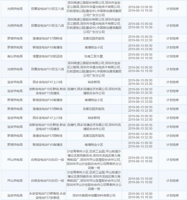 南方電網發(fā)布6月13日至6月16日深圳停電計劃 涉及多個區(qū)