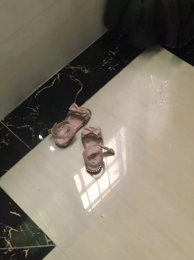 ▲疑似墜樓女孩留在3樓門(mén)外的鞋子
