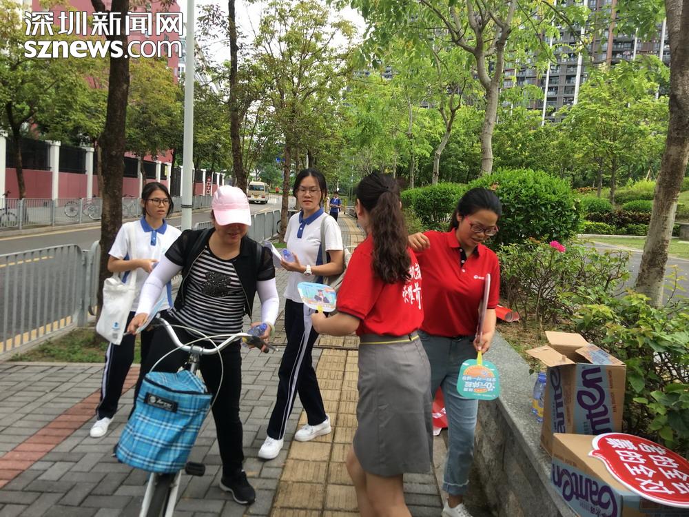 校外的卓越教育機構正在向考生分發(fā)扇子和礦泉水