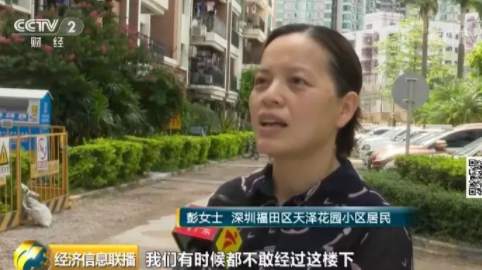 深圳福田區(qū)天澤花園小區(qū)居民彭女士:我們有時候都不敢經(jīng)過這樓下,萬一被上面的鋼管砸到,估計都沒命了。