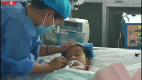 ICU病房里最后一次團(tuán)聚,媽媽不停給和和擦拭臉,不時(shí)低下頭親吻和和,抬頭有晶瑩的淚珠滴落。青島早報(bào)視頻截圖