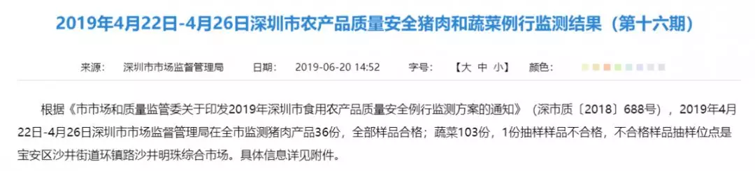 最近的深圳 真的特別火辣 辣到讓人不敢直視 滿腦只想著怎么降溫 雖然吃雪糕很爽 但一直吃不能一直爽 因?yàn)?/p> 廣東人會(huì)心一笑 開(kāi)始喝起了涼茶 至于吃 最近流行起了一種說(shuō)法 吃菜能降溫 作為吃菜星人食安君 覺(jué)得此法可以一試 但在此之前 必須先關(guān)注最新的菜肉抽檢資訊呀 2019年4月22日-4月26日 共抽檢36份豬肉和103份蔬菜 豬肉抽樣樣品全部合格 蔬菜有1份抽樣樣品不合格趕緊來(lái)看看 是哪份蔬菜抽樣樣品不合格? 不合格樣品抽樣信息 最后 記住要時(shí)刻關(guān)注抽檢信息哦 想要身體健康 就從守護(hù)自己的菜籃子做起! 食安君提醒大家 2019年深圳市食品安全宣傳周啟動(dòng)儀式 就要開(kāi)始啦! 你,期待嗎? 編輯整理:深圳食事藥聞 轉(zhuǎn)載請(qǐng)注明以上內(nèi)容