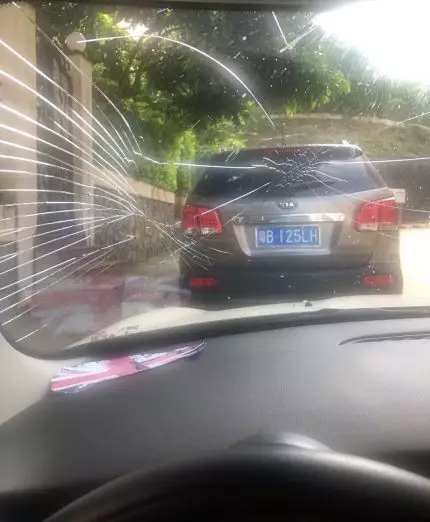 ▲車(chē)玻璃被砸了一個(gè)大洞