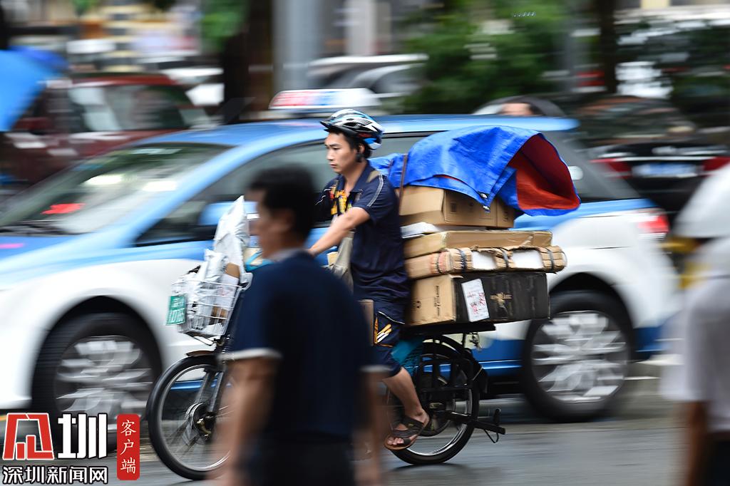 深圳新聞網(wǎng)2019年7月10日訊(記者楊浩翰) 7月10日,深圳各區(qū)出現(xiàn)暴雨天氣,早上氣象臺(tái)更是懸掛紅色暴雨信號(hào),市民的出行收到一定程度影響。今天中午,記者在福田區(qū)拍下了在暴雨中騎車出行的“騎士們”。