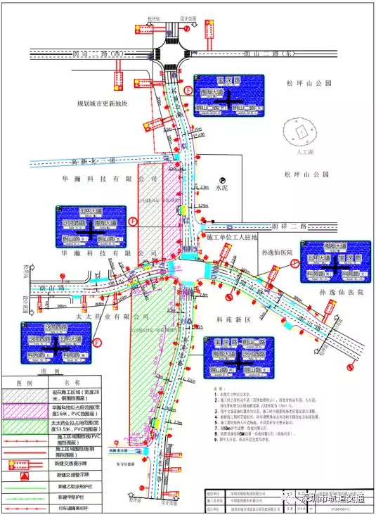 由于松坪站為盾構(gòu)始發(fā)車站,處在朗山路與科苑北路交叉口,車流量大,且施工區(qū)域內(nèi)管線復(fù)雜。因此,此次交通疏解施工任務(wù)重、壓力大,面對困難,項目部科學(xué)規(guī)劃,合理組織,優(yōu)化人員、物資調(diào)度,松坪站一階段一期交通疏解工作得以順利推進。