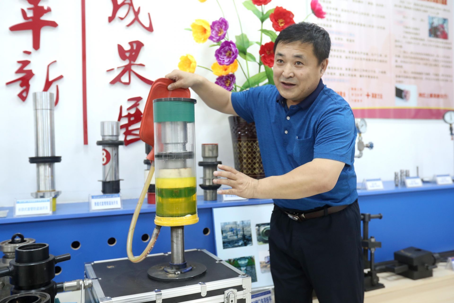 見到段福海時(shí),他身著一件藍(lán)色Polo杉,笑瞇瞇的,個(gè)頭敦實(shí),走路很快。在二樓展示廳里的一面墻上,擺滿了段福海的“發(fā)明創(chuàng)造”所獲的獎(jiǎng)狀。而在一墻之隔的“勞模創(chuàng)新工作室”,他發(fā)明的“家伙什兒”堆滿了整間屋。他用那布滿老繭的厚厚手掌隨便拿起一個(gè),開始向記者介紹其用途?!澳憧矗@個(gè)小東西成本才五毛錢,卻解決了100萬的難題。這個(gè)鋼絲球兩塊錢,但給國家省了……”在油田一線工作的35年間,段福海研發(fā)的創(chuàng)新成果多達(dá)232項(xiàng),累計(jì)創(chuàng)造經(jīng)濟(jì)效益2.38億元。