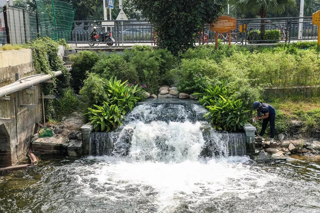 “經(jīng)過治理,機場內(nèi)排洪渠的樣貌有了翻天覆地的變化,水質(zhì)也大有改善。如今,越來越多附近的居民到這里來散步納涼。”