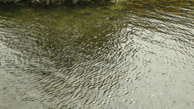 兩岸碧綠的草地和青翠的樹木相依相偎