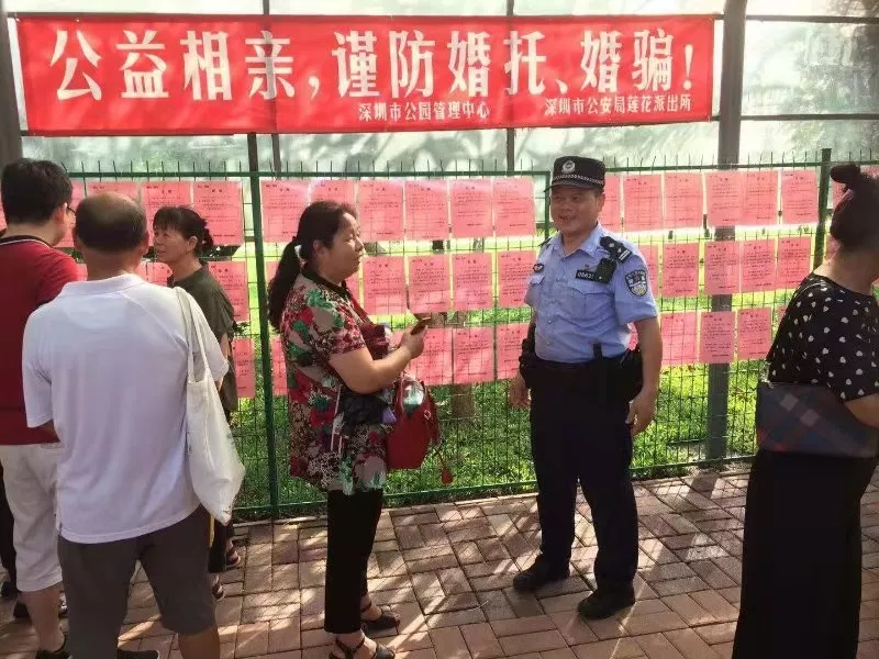 這是蓮花山公園相親角封閉整改兩周之后的樣子。此前,該相親角“黑中介”、婚騙等亂象突出,為從根源上治理亂象,深圳市公安局福田分局蓮花派出所與城管局、園區(qū)管理處等部門一起研討治理方案,并封閉整治了兩周的時間。7月22日,整治后的相親角重新開放,環(huán)境煥然一新,相親氛圍文明有序,以前混跡在人群里的“黑中介”也不見了蹤影,現場為子女征婚的大爺大媽們紛紛點贊。