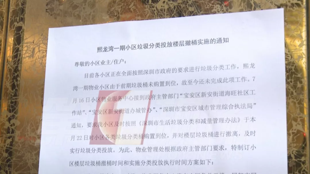 是否真的如幾位業(yè)主所說,小區(qū)物管并沒有合理設(shè)置垃圾分類投放點呢?管理處回應(yīng)稱,小區(qū)目前是嚴(yán)格按照寶安區(qū)住建局以及寶安區(qū)城管局下發(fā)的通知,在6月底前全面實施小區(qū)樓層撤桶。