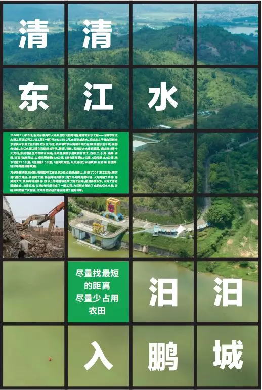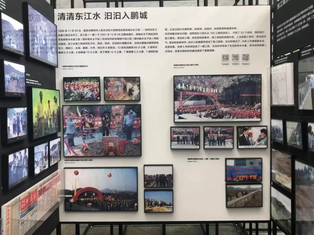 第三部分“清清東江水汩汩入鵬城”,著重展示東江水源工程建設(shè)的全過程。以工程線路為展覽線索,再現(xiàn)水務(wù)工作者在長達(dá)106公里的戰(zhàn)線上奮戰(zhàn)的場面。通過輸水設(shè)施的新舊照片對(duì)比,描繪出一條在深惠兩城平地崛起的深圳“生命線”。