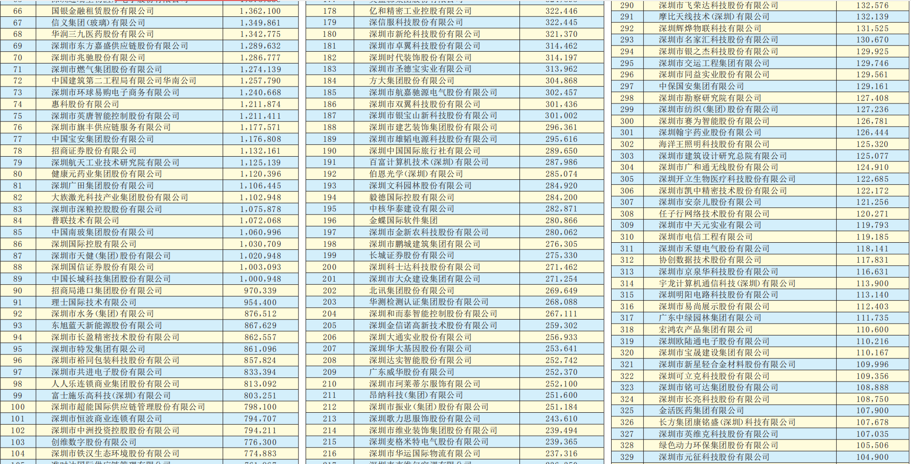 中國平安保險(集團)股份有限公司、華為投資控股有限公司、正威國際集團有限公司居排行榜前三位?!?019深圳500強企業(yè)發(fā)展報告》在中國企業(yè)聯(lián)合會、中國企業(yè)家協(xié)會的指導(dǎo)下,在有關(guān)部門的支持下,由深圳企聯(lián)編撰,旨在加快打造粵港澳大灣區(qū)核心引擎城市,將深圳建設(shè)成為具有世界影響力的創(chuàng)新創(chuàng)意之都,做強做優(yōu)實體經(jīng)濟,促進企業(yè)品牌化、國際化的高質(zhì)量發(fā)展,增強各界對企業(yè)社會價值的廣泛認知,為深圳經(jīng)濟創(chuàng)造新的可持續(xù)增長動能。