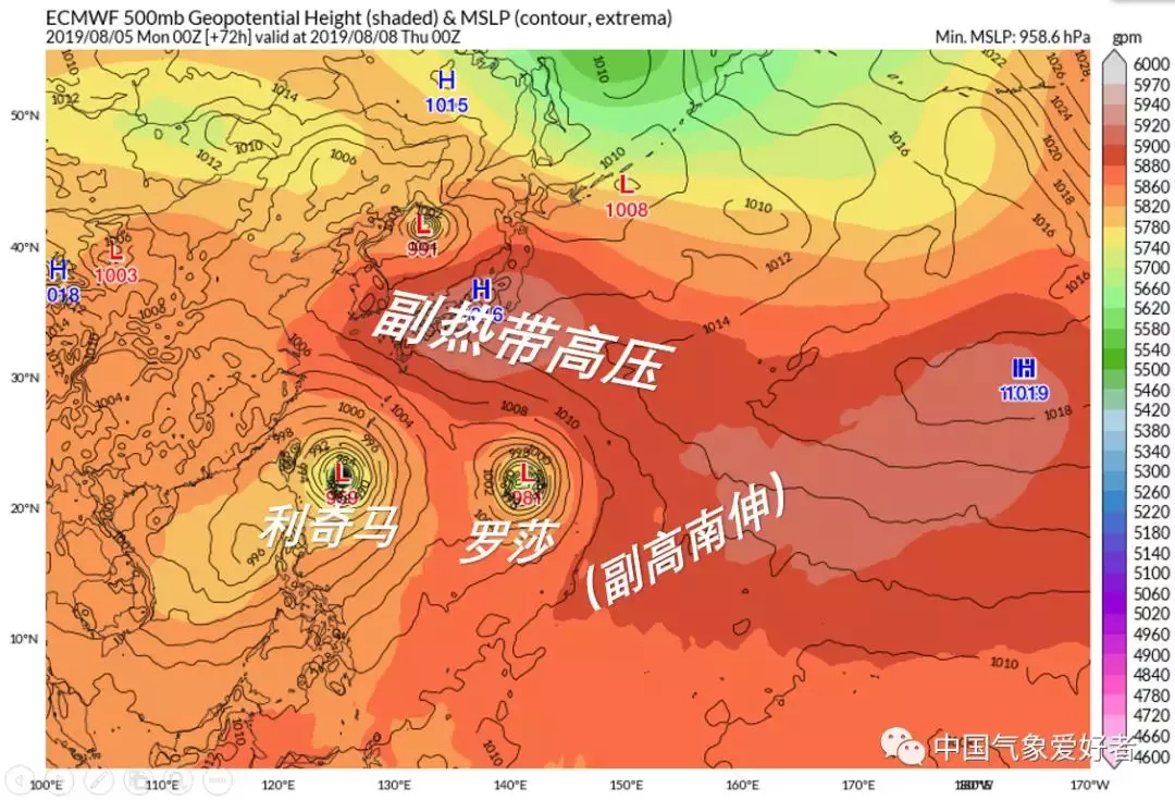 羅莎臺(tái)風(fēng)將會(huì)是一個(gè)又大又強(qiáng)的臺(tái)風(fēng)。由于個(gè)頭太大,副高壓不住,所以它不會(huì)來我國,最大可能是緩慢北上登陸日本。不過,羅莎將會(huì)阻止副高在利奇馬南側(cè)西伸,并且對(duì)利奇馬有互斥作用,是利奇馬臺(tái)風(fēng)的“導(dǎo)演”之一??傮w看來,羅莎將會(huì)對(duì)利奇馬施加向西的作用力,促使利奇馬更靠近我國。
