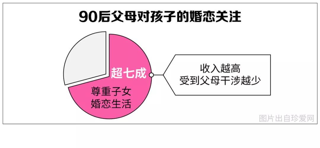 90后的婚戀觀發(fā)生著變化,他們的父母對此又有怎樣的反應呢?調查顯示,超7成父母選擇尊重子女的婚戀生活;子女收入越高,在婚戀選擇方面受到父母干預越少,這也證明經(jīng)濟獨立,可以讓單身男女在婚姻方面有更多的話語權。