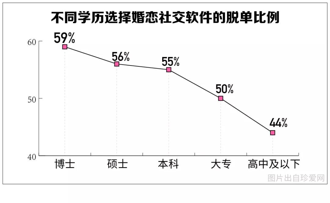 隨著社會的發(fā)展,單身90后脫單的方式也變得更新穎多樣。調查顯示,親戚朋友介紹與婚戀社交軟件是當下90后單身青年脫單的主流方式,其次為工作環(huán)境接觸、相親活動和泛社交活動。就性別差異來看,超半數(shù)(54.27%)男性愿意使用婚戀社交軟件,略高于女性(49.42%),而女性更多的是選擇親戚朋友的介紹(62.54%)。從學歷背景看,學歷越高的青年群體更愿意嘗試使用婚戀社交軟件等新興方式脫單。