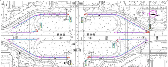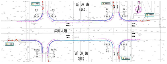 二、區(qū)域二(深南新洲立交A-D匝道、深南轉(zhuǎn)各匝道路段,施工時(shí)段為2019年8月-2020年1月,預(yù)計(jì)143天)