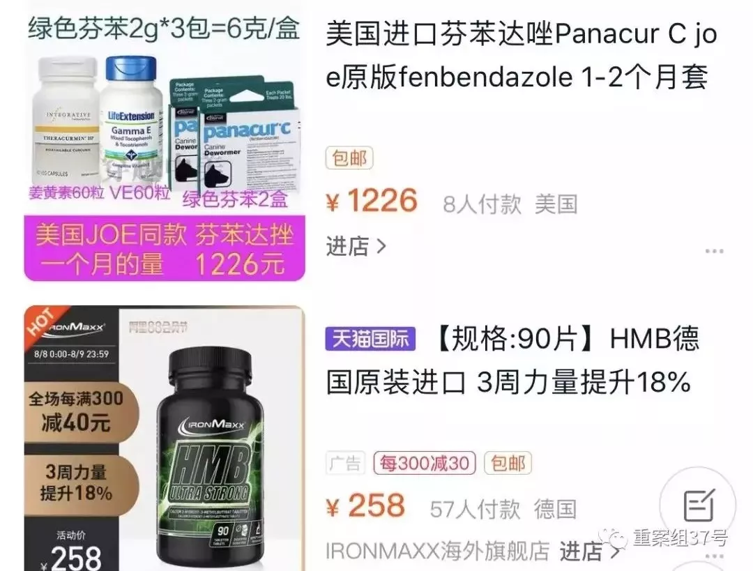 事情發(fā)展到現(xiàn)在,已經(jīng)有人在網(wǎng)上做起這門(mén)生意。在電商平臺(tái)搜索可見(jiàn),不少商家打出“喬伊套餐”等招牌售賣(mài)芬苯達(dá)唑,自稱(chēng)是按美國(guó)患者喬的配方搭配,但如此一來(lái),原本20多元一瓶的藥,搭配后就要賣(mài)800元左右。