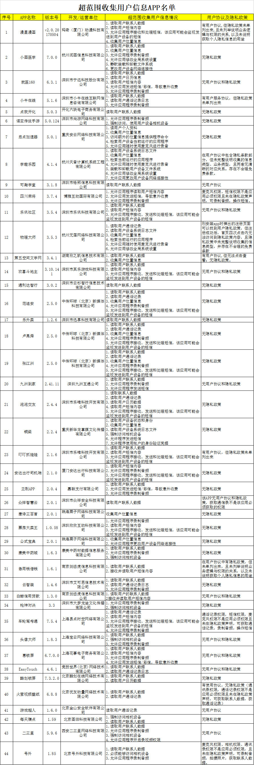 原標(biāo)題:超范圍讀取用戶通話記錄等信息!這44款A(yù)PP被廣東警方曝光了
