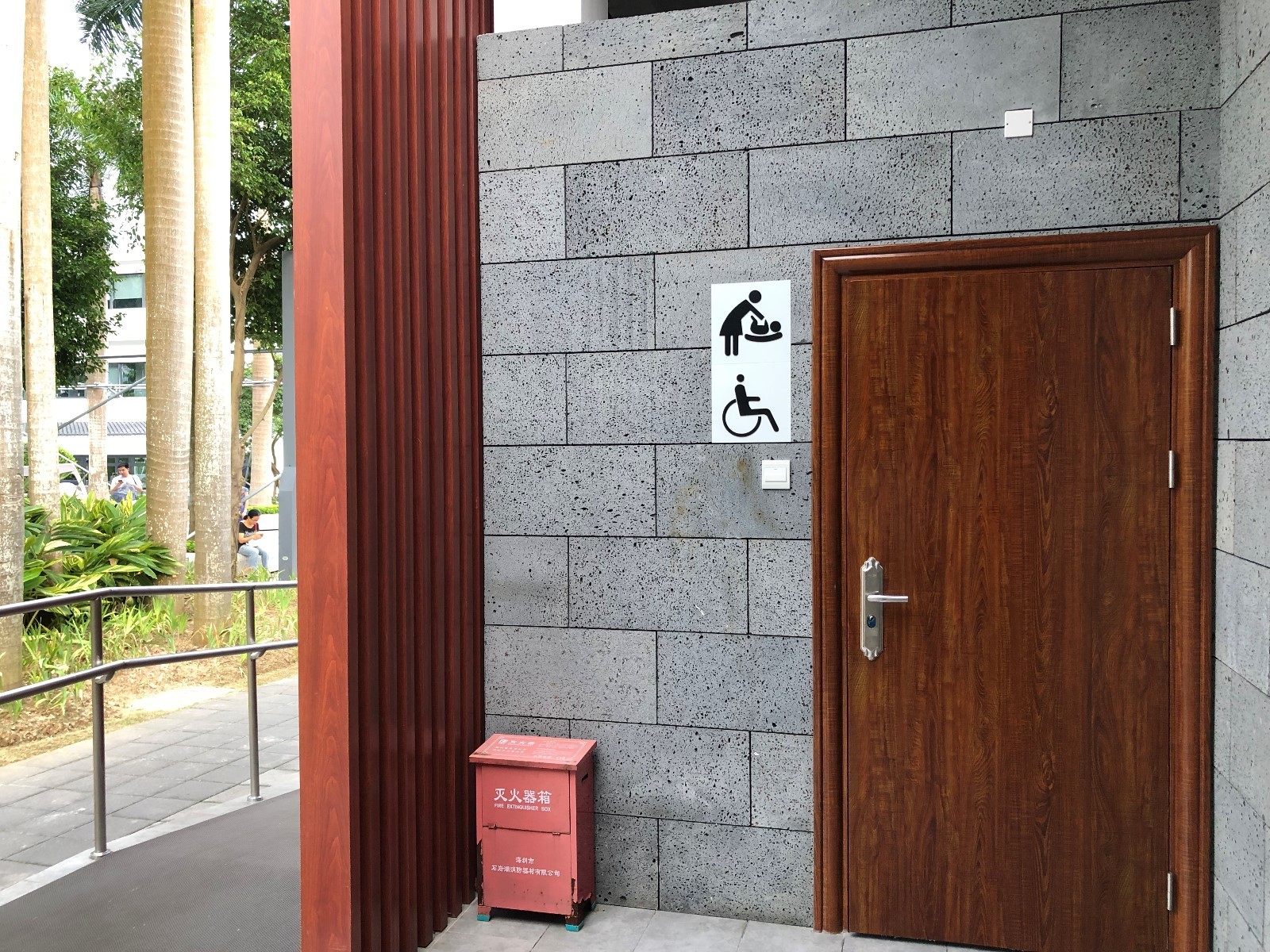 ▲記者來(lái)到深圳人頗為喜愛(ài)的“網(wǎng)紅公園”——香蜜公園采訪時(shí),正值夕陽(yáng)西下,天氣由炎熱略轉(zhuǎn)涼爽,很多家長(zhǎng)帶著孩子在兒童游樂(lè)場(chǎng)里嬉戲。游樂(lè)場(chǎng)附近有一個(gè)公共廁所,記者沒(méi)有找到親子衛(wèi)生間,但也在公廁門(mén)口發(fā)現(xiàn)了母嬰室、殘疾人衛(wèi)生間“二合一”的衛(wèi)生間,內(nèi)有一個(gè)帶扶手的坐便器和母嬰設(shè)施。