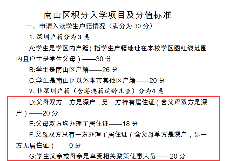 對此,小編查了查南山區(qū)積分入學項目及分值標準↓↓↓