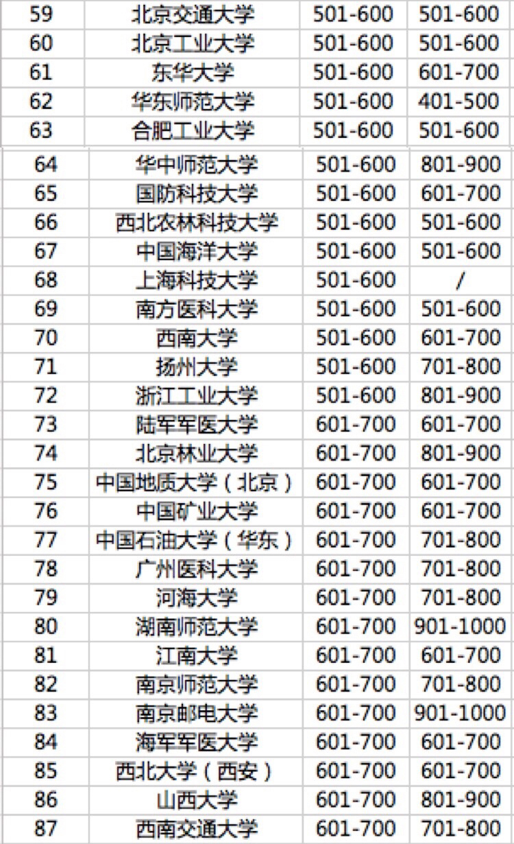 清華大學(xué)在中國內(nèi)地排名最高,位列全球第43名。上海交通大學(xué)的進步尤其引人注目,今年首次躋身全球百強,位列全球第82位,上海交通大學(xué)也成為繼清華大學(xué)、北京大學(xué)和浙江大學(xué)之后進入全球百強的第四所中國大學(xué)。復(fù)旦大學(xué)、華中科技大學(xué)、中山大學(xué)和中國科學(xué)技術(shù)大學(xué)排在全球101-150名。中南大學(xué)、蘇州大學(xué)、東南大學(xué)、電子科技大學(xué)和武漢大學(xué)首次進入世界200強。南開大學(xué)、山東大學(xué)、同濟大學(xué)首次進入世界300強。深圳大學(xué)、南方科技大學(xué)、青島大學(xué)、福州大學(xué)、鄭州大學(xué)、南昌大學(xué)、江蘇大學(xué)、暨南大學(xué)今年首次入圍全球500強。上??萍即髮W(xué)、廣東工業(yè)大學(xué)等13所大學(xué)首次進入全球1000強。