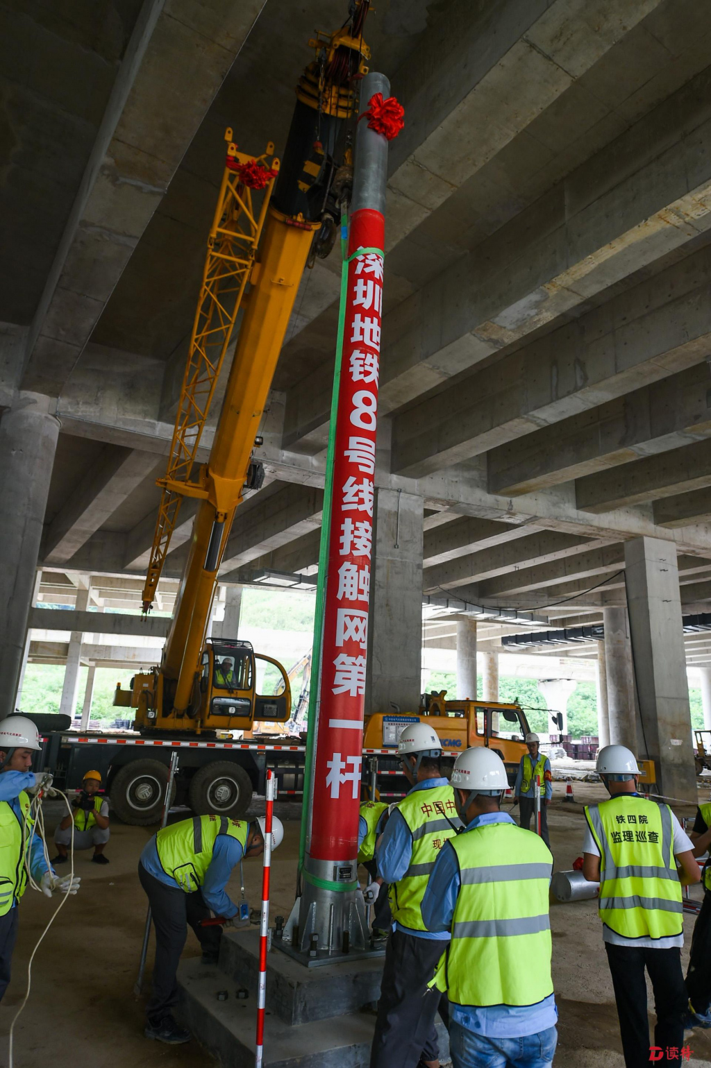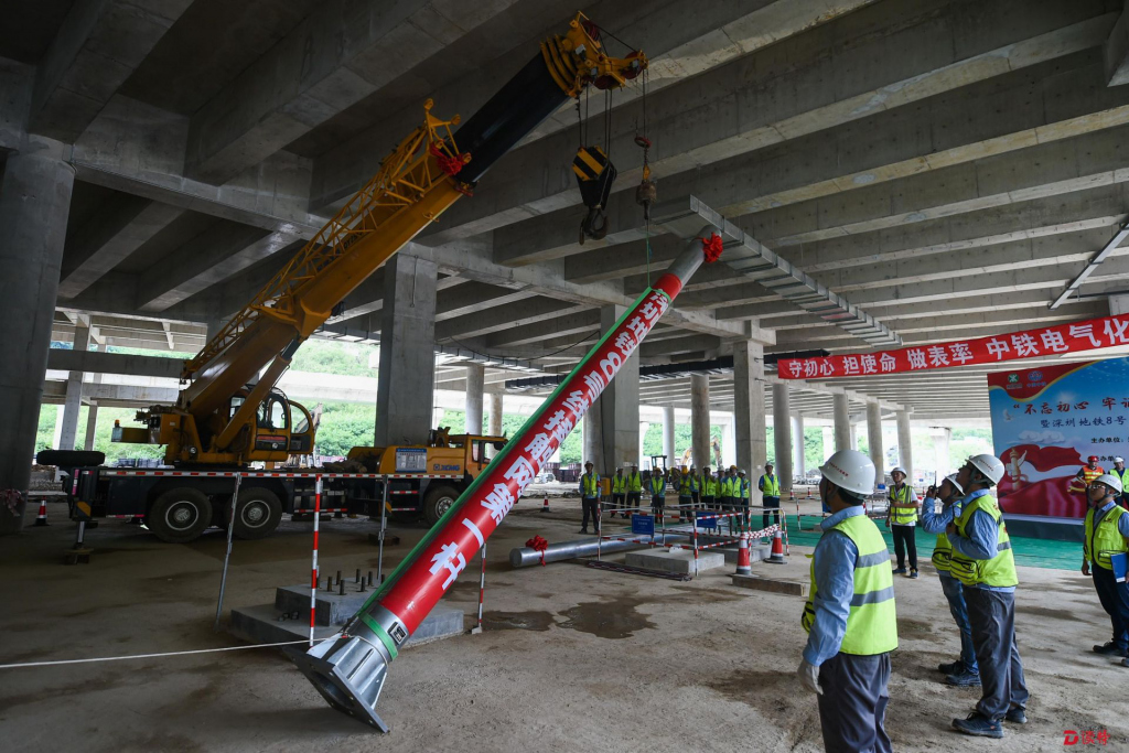 深圳特區(qū)報2019年8月17日訊 8月16日,地鐵8號線一期工程立起接觸網(wǎng)第一桿,拉開了全線系統(tǒng)設備安裝施工序幕。