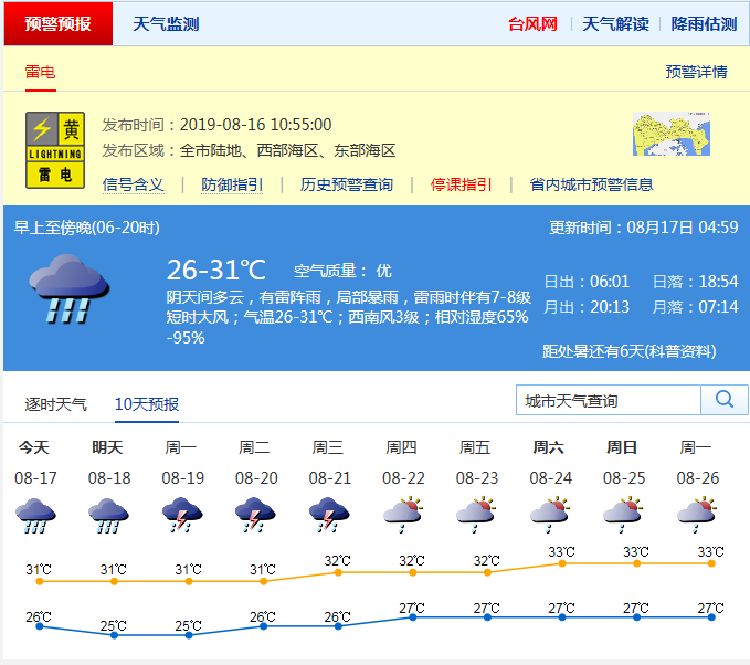 接下來,天氣將發(fā)生轉(zhuǎn)變,預(yù)計17日至19日有雷陣雨,局部可達(dá)暴雨量級,伴有雷暴和7~8級短時大風(fēng),高溫天氣將得到緩解,提醒市民做好防雷防雨防風(fēng)措施。